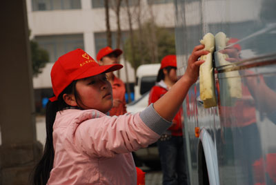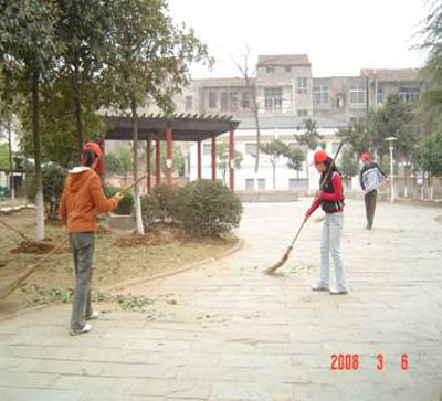 商贸学院200余名“小红帽”分为四个小分队,分别完成了对校园的卫生打扫、道路平整、车辆清洗等工作,使校园环境焕然一新。连接南北校区的小路变平坦了,学生宿舍区的晒场更卫生了,学校绿化区看不到白色垃圾了。