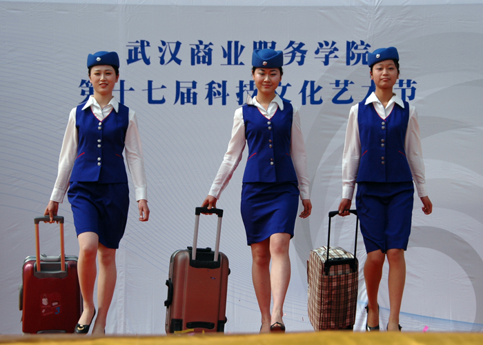 荆楚网消息 (楚天都市报) 昨日,武汉商业服务学院举行科技文化艺术节暨“T台随你秀”院系形象展示大赛。图为该校05级学生在展示形象设计毕业作品。
