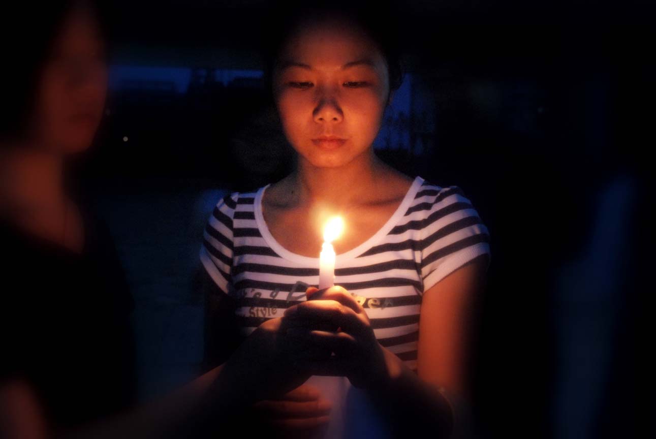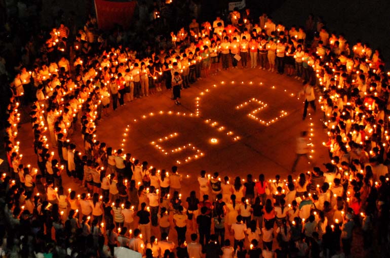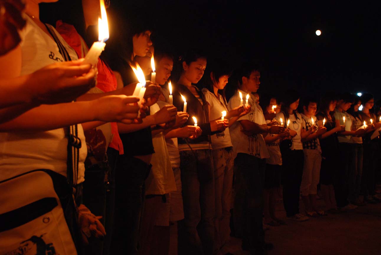5月19日,必赢官网700余学子在北区广场,为四川地震灾区的同胞烛光祈福。