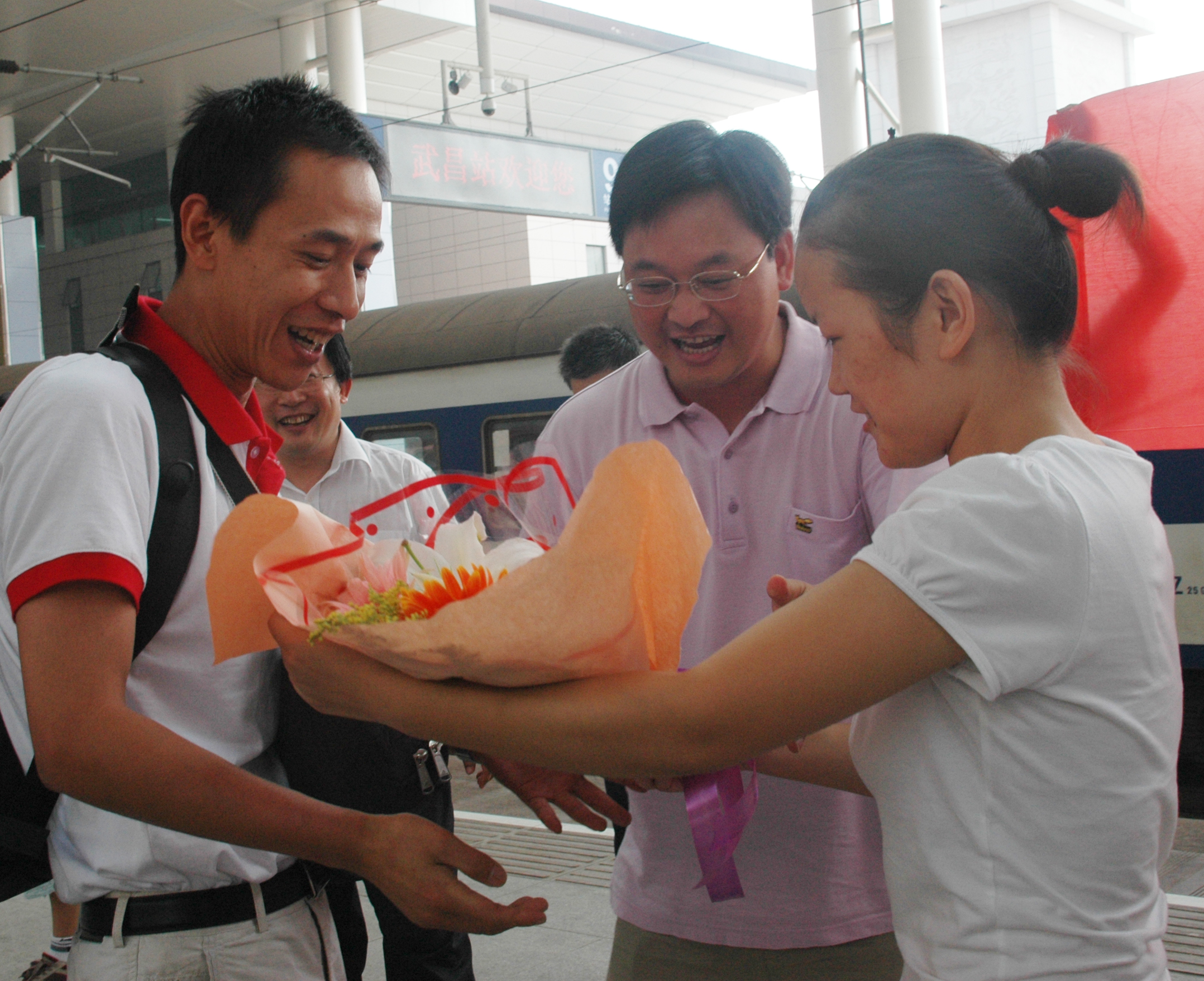 9月22日上午,随着火车缓缓驶入武昌站,必赢官网227名师生在经历了2个多月的奥运餐饮服务后,圆满完成任务,返回武汉。王清华副院长、办公室和食品工程系相关负责人专程赴火车站迎接大家的凯旋。