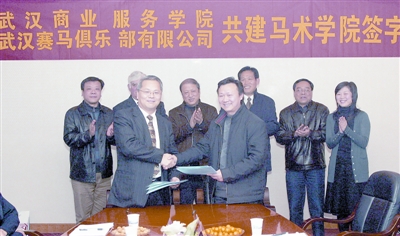上图为武汉商业服务学院与武汉赛马俱乐部签订共建马术学院协议。记者 李葳 摄