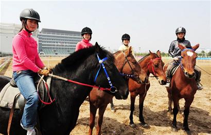 “不被赛马摔下来,自己打理的赛马在比赛中夺第一,能听到练马师的表扬,这是我们最开心的三件事。”女大学生准骑师们对未来充满憧憬。