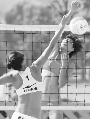 沙排巡回赛总决赛竞争得非常激烈。 记者 李葳 摄