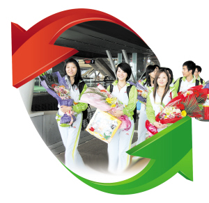 武汉志愿者凯旋(左一为韩瑜)。记者张�� 摄
