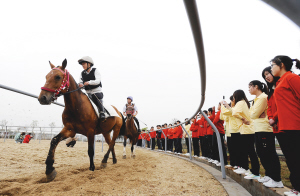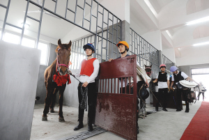 策马扬鞭,这是只有在赛马场上才能看到的场景,前天下午却在武汉商业服务学院校园里出现。该校赛马专业学生骑着5匹骏马,在新建成的练马场上一展骑术。5匹骏马由东方神马实业(武汉)有限公司赠送,分别为伊犁马和通辽马,“籍贯”分别是新疆和内蒙古,马龄7岁左右,处于青壮年期,每匹价值1万多元。学校为此投资60余万元,新建占地8公顷的练马场,配套建有10个马厩的马房,每个马厩面积为12平方米,学生不出校门即可实地学习养马、驯马、遛马等基础知识,满足赛马专业学生课程培养的需要,这在全国高校中系首创。