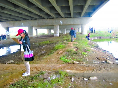 来自武汉商业服务学院的志愿者说,他们最近通过走访发现,由于桥西水域被隔断,水质状况明显比桥东边的水域差很多。