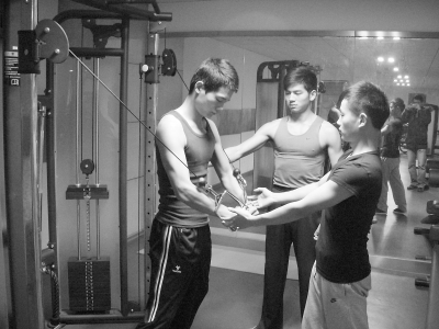 昨日下午,在汉阳郭茨口一家健身中心,武汉商业服务学院体育系2010级学生李敏正在认真辅导学员训练,她是这里的学生健身教练,兼职已有4个月。