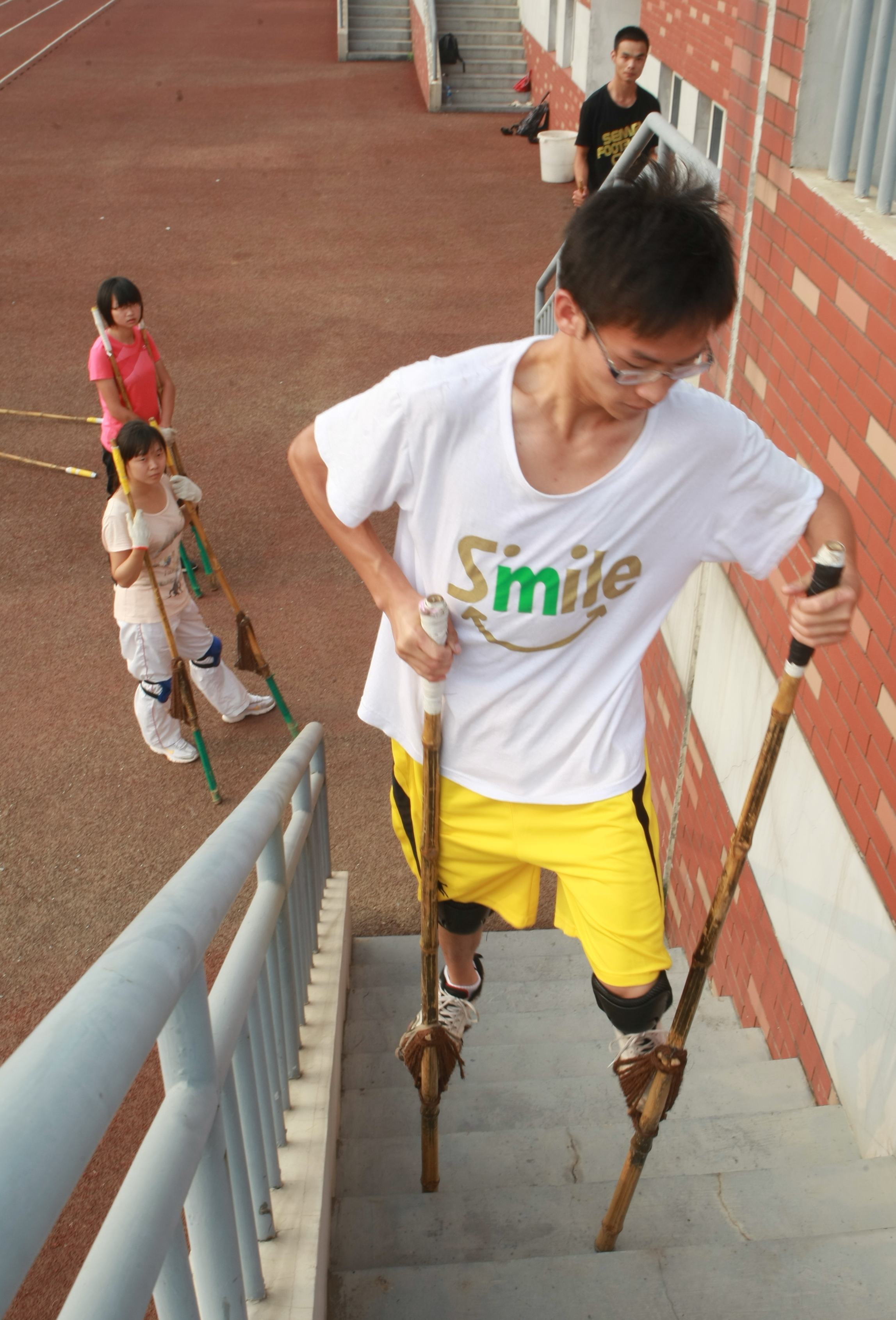 队员们现在已经可以跑出百米14秒的成绩,“我们离目标还很远”高跷队队长李凡说。8月初,他们将赴湖北民族学院参加全国少数民族运动会高脚竞速类比赛。