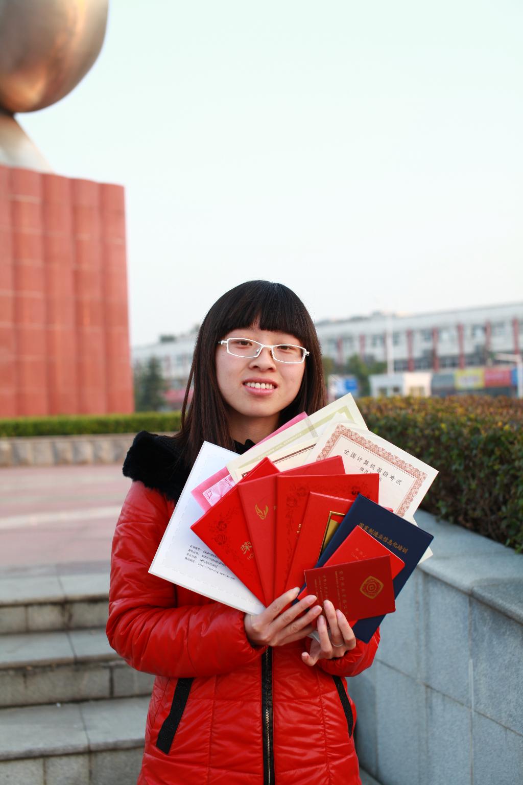 考证的过程中得到了什么?彭金敏觉得考证不仅充实了自己的理论知识,提升了学习能力和自信心,最重要的是锻炼自己心态和吃苦的精神。十几个证件,彭金敏认为考会计从业资格证是最曲折的,三门课程中,她最简单基础的一门没有考过,直接导致了三门全部重考。同学们都说她很倒霉,她却认为是自己不够努力,彭金敏说:“感谢这次失败,让我重新掌握更扎实的知识,也感谢这次失败,让我学会凡事不找借口。”