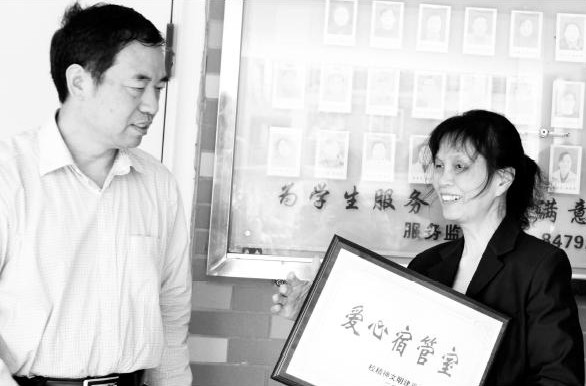 本报讯(记者张瑜琨通讯员王亚兰杜思祺刘梦洁)“你们的工作虽然平凡,但是对学生的成长意义重大。”昨日上午,武汉商业服务学院党委书记郑光喜来到学生宿舍楼,看望“宿管妈妈”,并将学校精神文明建设指导委员会授予的“爱心宿管室”牌匾送到了观湖苑3栋、4栋宿管值班室的“宿管妈妈”手中。