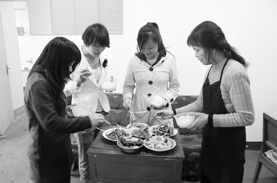 2009年底,邹阿姨开始请勤工俭学的学生们到值班室吃饭,慢慢形成习惯,一些孩子成了餐桌上的“常客”。两年后,其他5位阿姨也逐渐加入进来,每次做了好菜,都会邀请学生们一起来吃饭,“爱心餐桌”在不经意间形成。