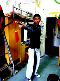 楚天都市报讯图为:张尤参加了学校的武术协会,耍起剑来有模有样