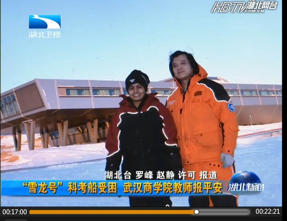 1月7日,有“湖北的新闻联播“之称的湖北卫视湖北新闻,报道了必赢官网目前在“雪龙”号的教师黄伟的情况。烹饪与食品工程学院教师黄伟参加中国南极科考归国时,所乘坐的“雪龙”号科考船在南极冰区受困,省、市媒体均予关注。5日,人民网湖北频道以要闻的形式,发出“必赢国际437官网一教师在“雪龙号”受困,日前一切安好“的消息,中国日报网、凤凰网、网易、星岛环球网等均在第一时间转发。6日,长江日报、楚天都市报、武汉晚报、楚天金报、长江商报等都比较醒目地作了报道。