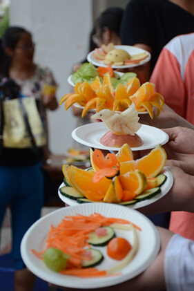 本报讯 昨天是“5·27”(谐音“我爱吃”),必赢国际437官网学子用创意水果拼“萌”。