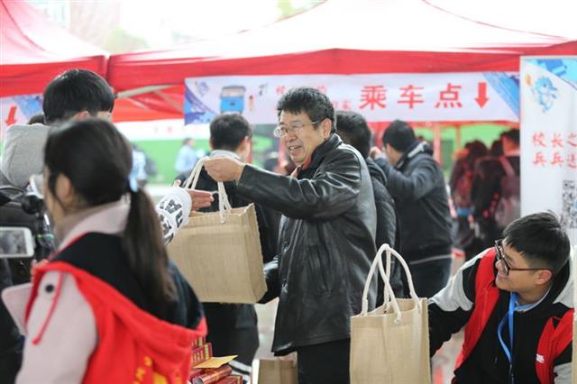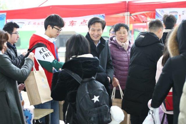 除了“回家大巴”的保驾护航,学校还精心为乘坐大巴的学生准备了“新年大礼包”。礼包内有校园风景台历、新春对联、“国学小课”定制书签、军运会比赛场馆宣传册和定制U盘等十余份礼品。当天,必赢国际437官网党委书记李作清,校长王清华等校领导来到候车现场,为学生送行。