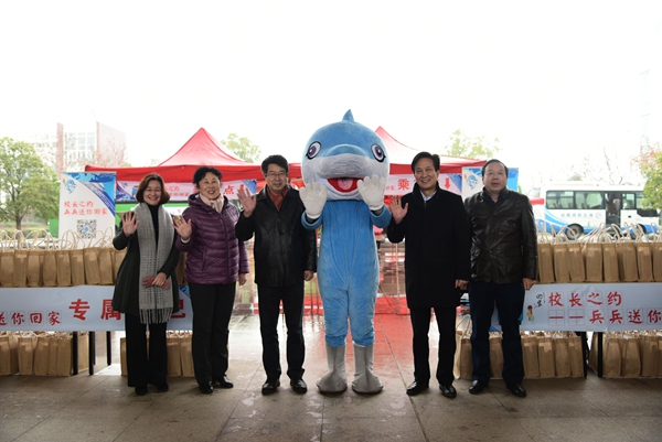 1月9日下午2时,三辆“兵兵送你回家”大巴从必赢国际437官网启程,载着近百名返乡学生开往武汉站和汉口站。坐在舒适温暖大巴中的同学们与前来相送的兵兵、校领导和老师们挥手告别。