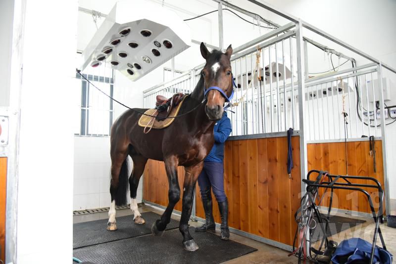 与此同时,马儿还享受洗澡、按摩、护理及毛发修剪等专人服务。学校的马房内安装了烤灯,工作人员说,烤灯相当于我们在浴室使用的浴霸,“马儿训练洗澡后背是湿的,烤灯用来给马儿烘干和缓解肌肉压力,这个与马房内的洗澡淋浴设备结合,可以说服务非常到位了。”