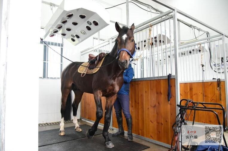 与此同时,马儿还享受洗澡、按摩、护理及毛发修剪等专人服务。学校的马房内安装了烤灯,工作人员说,烤灯相当于我们在浴室使用的浴霸,“马儿训练洗澡后背是湿的,烤灯用来给马儿烘干和缓解肌肉压力,这个与马房内的洗澡淋浴设备结合,可以说服务非常到位了。”