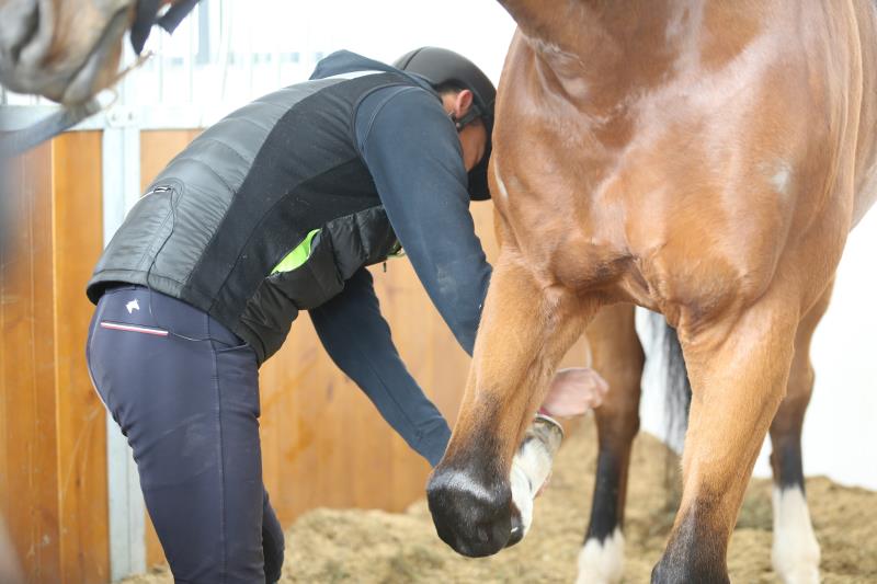 除了天冷加衣,这些马儿还享受着洗澡、按摩、刷毛、毛发修剪等专人护理服务。此外,工作人员们每天还会为马儿们打蹄油。蹄油可以让马蹄与水隔离,可以起到防潮和杀菌的作用,以保持马蹄的干净整洁,避免马儿长时间站在有水的地方容易溃烂生疮。“给一匹马打一次蹄油大概2分钟,经过调教的马儿们看到人来上蹄油,会自动抬腿。”据介绍,团队人员即将第一次给这些马儿换蹄铁。