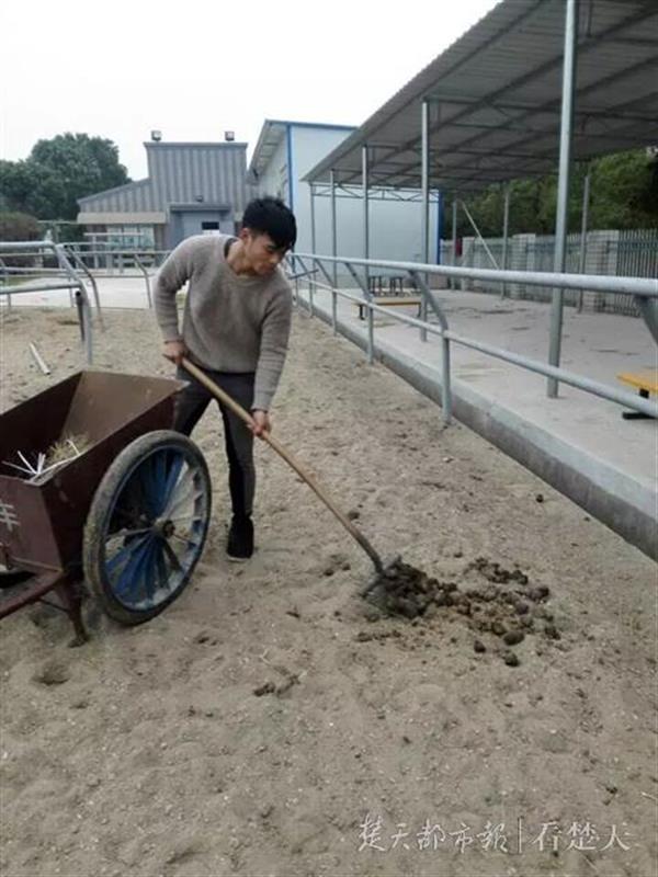 除了每天定时喂食之外,马儿还需要一个舒适干净的生活环境,每到下午3点,朱粮剩和同学们就拿起专用工具清洁学校马房。先铲去脏的旧的马垫料,再铺上新的干净的马垫料。“铲马垫料很费劲,必须铲好几遍,大冬天我们都出能一身汗。”朱粮剩解释道。“跟马在一块的日子真的很充实,学习了更多马房管理的知识,马很通人性,越相处越喜欢它们。”