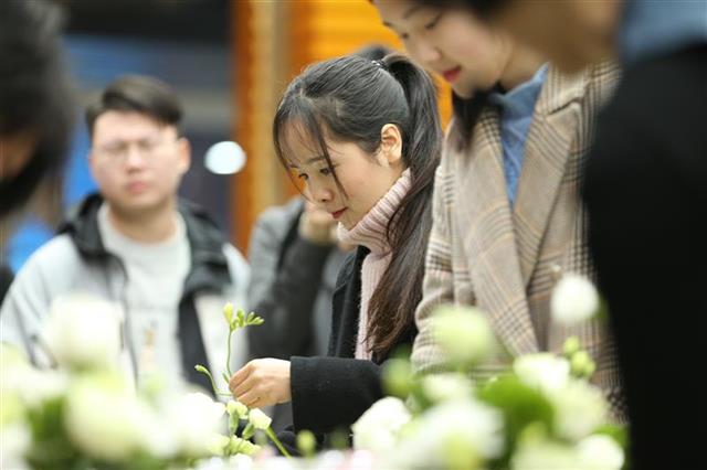 为庆祝三八国际妇女节,必赢国际437官网于3月8日开展了一场别开生面的园艺插花会。学生们在专业花艺师的指导下完成插花制作,并将花束送给了自己心中的“女神”。“在我的心中保洁阿姨是最美的,她们工作特别辛苦,却给了我们最美的校园。”送花学生范勇说。