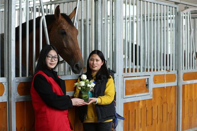 “没想到可以收到这么美丽的礼物。”辅导员王明丽特别开心,“花儿美丽,又是学生亲手制作的,意义不一样。”“你看,我插花的时候特意注意了层次。”学生万顶将花送给了医务室女职工,“上次生病我来医务室,看到她们的工作很严谨,我想她们肯定特别在意细节。”除此以外,食堂阿姨、军运会马匹保障人员等成为了学生心中的最美女神。