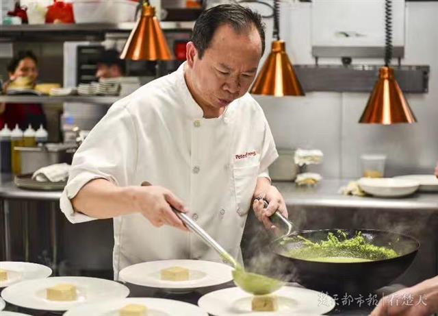 在美近20年,张鹏亮改良了很多中国菜。比如他研发的创意菜“天地合”,用西洋参搭配鸡蓉、火腿等原料,再辅之以汤羹和锅巴,让鸡肉和西洋参释放出最佳的味道,品尝过的食客们无一不叫好。“菜品可以因为需求不同创新,但是地道的中国味不能丢,原汁原味的民族精品也能被世界接受认可,地道中国味也能征服美国人的胃。”