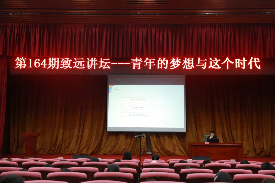 喻学林主要围绕“这是个什么时代、梦想:文明的动力、如何实现自己的梦想”三个主题为大家讲述时代与梦想的关系,“青年是国家的主力军,是国家的未来。”讲坛开始,喻学林指出青年的发展永远是国家发展的主色调。在时代变化上,喻学林介绍当今改革开放,科学技术改变了人们的生活,“这是个伟大的时代”,但同时也会出现反主流的文化、虚荣诱惑的干扰,未来青年人提高自己的学习能力,辨别正确的信息;在青年人的梦想上,喻学林引用习近平主席说的“人民对美好生活的追求就是我们的奋斗目标。”说明梦想对青年人的指引作用;在如何实现梦想上,喻学林指出青年人要经营好自己,学会把自己的学习与工作安排地井井有条,抓住求学的机会。最后,他寄语全体学生“认准了,就去做,不跟风,不动摇”,做一个有创新力、行动力、远见、定力的追梦人。