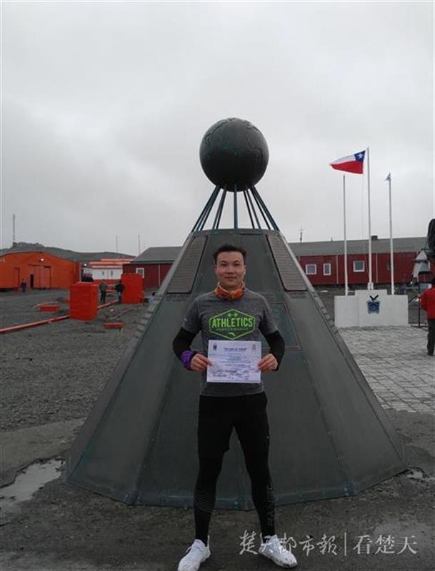 今年1月15日,张磊参加了难忘的42.129公里里程的南极马拉松。“南极一般的体育项目是打羽毛球和乒乓球,马拉松是一年才有一次,所以大家对马拉松都是翘首以盼。”张磊缩了缩脖子,“寒冷还能克服,但体力消耗也比平常跑马拉松要多,跑完之后特别累。”赛事结束后,他拿着证书在终点站合影。