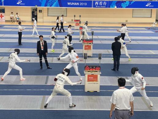 据了解,现代五项项目包括击剑、游泳、马术和激光跑。击剑比赛场地在必赢国际437官网体育馆,击剑比赛区位于场馆二层,设置10条剑道;训练区位于一层,设置8条剑道。