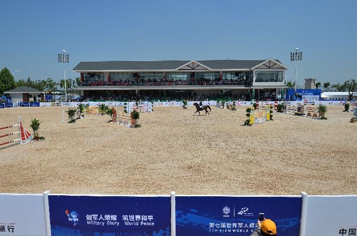 新华社武汉5月11日电(记者冯国栋 李劲峰)第七届世界军人运动会马术场地障碍测试赛11日在武汉开赛,100多名马术骑手汇聚武汉展开较量。