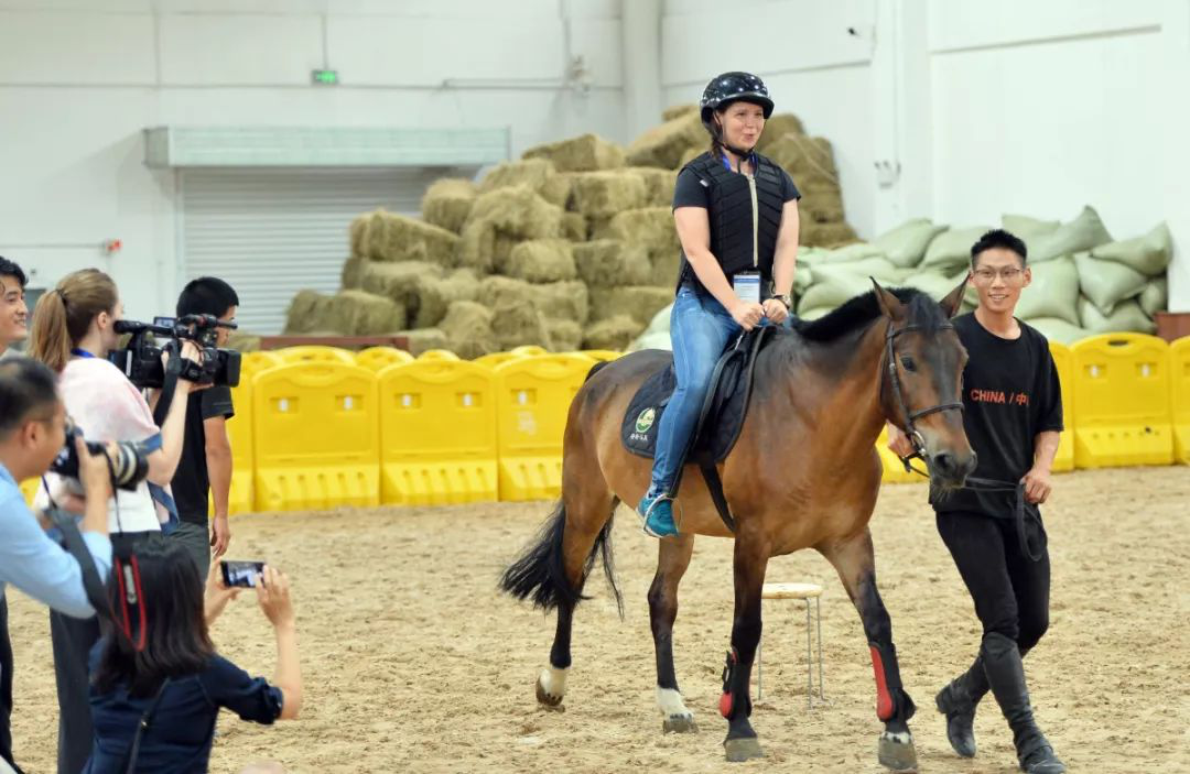 菲律宾星报记者克里斯琼•罗塞雷斯向饲养人员连续发问:驭马公园什么时候建成的?此前学校是否有马?军运会比赛时,赛马是否都能保持良好的状态?工作人员回答,目前正在对赛马作精心调训,让每一匹赛马赛时处于最佳状态。