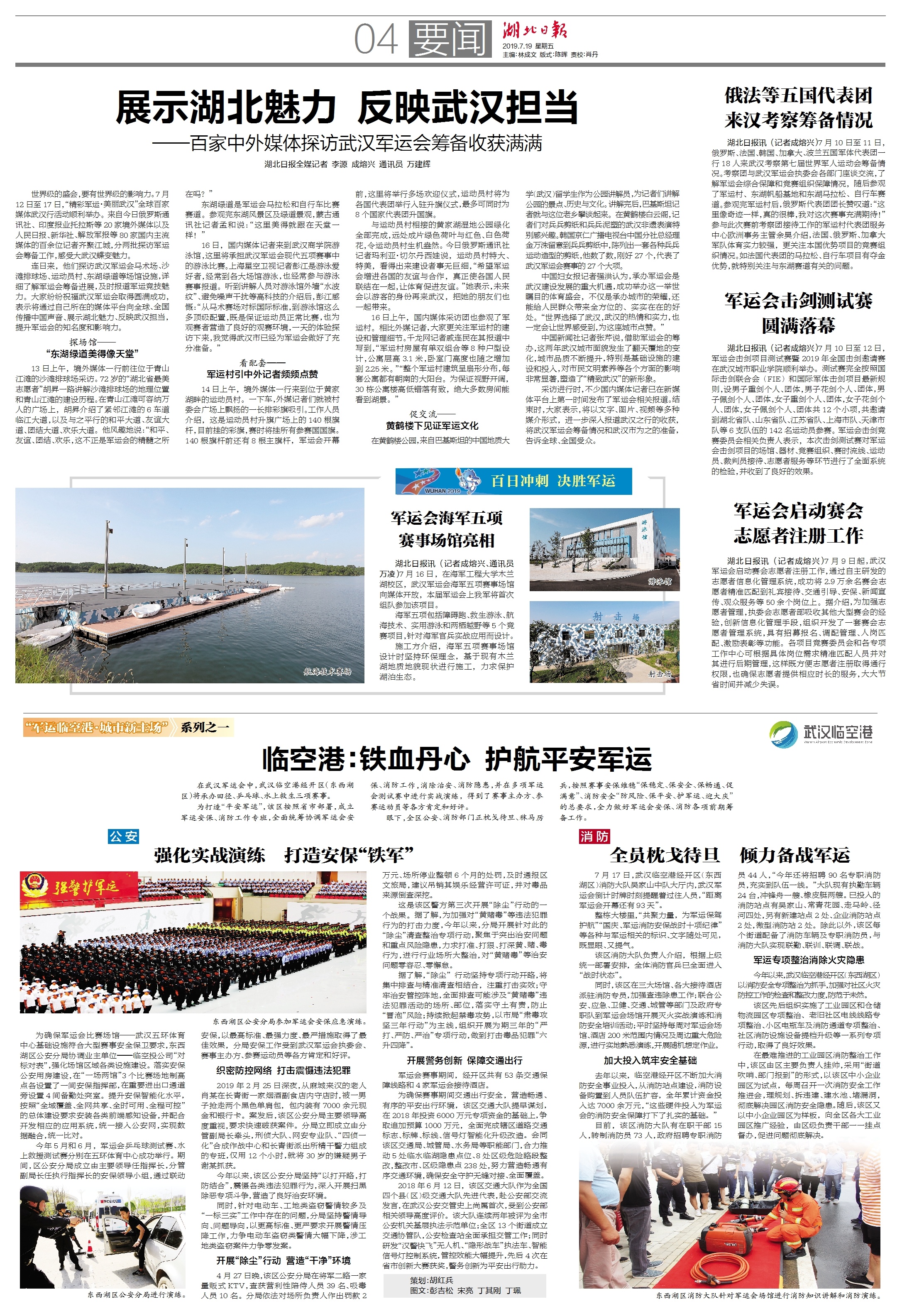 世界级的盛会,要有世界级的影响力。7月12日至17日,“精彩军运·美丽武汉”全球百家媒体武汉行活动顺利举办。来自今日俄罗斯通讯社、印度报业托拉斯等20家境外媒体以及人民日报、新华社、解放军报等80家国内主流媒体的百余位记者齐聚江城,分两批探访军运会筹备工作,感受大武汉蝶变魅力。