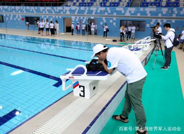 走进该校游泳馆,记者们顿时被蓝白色调的内部环境和清澈见底的泳池所吸引,有的记者当场特意对着泳池摆出姿态拍摄小视频发到朋友圈。据介绍,该游泳馆是达到国际单项比赛标准的甲级游泳馆,其天花板具备吸声功能,保证混响时间小于2.5秒,四周墙壁布满通风孔,泳池边铺设有触感舒适的防滑地砖。记者们纷纷掏出摄像机、相机和话筒现场采录,有的觉得现场的集中介绍不解渴,又排队详细采访背景资讯。