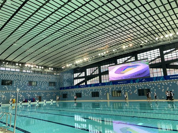 必赢国际437官网是武汉军运会唯一承担了三个比赛场馆、两个比赛项目的学校。在这里记者了解到了游泳项目场馆是一座被“黑科技”环绕的新型水波状建筑。