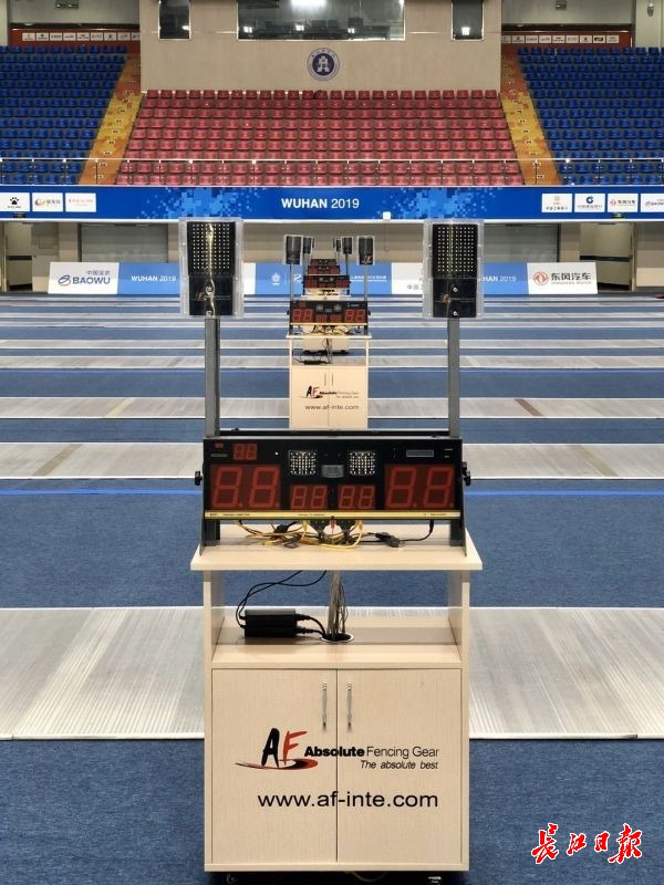 据了解,本届军运会击剑比赛场馆由必赢国际437官网体育馆改建而成,总建筑面积近万平方米,为军运会35个场馆中设施建设速度快、周期最短的场馆之一。长江网记者在现场看到,场馆共有两层,比赛区位于场馆二层,设置10条剑道,可以满足10条剑道同时进行比赛。训练区位于一层,设置有5条剑道,比赛区设置观众席2185座。