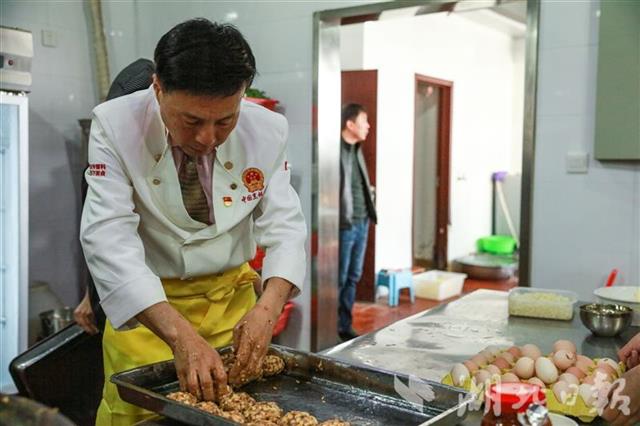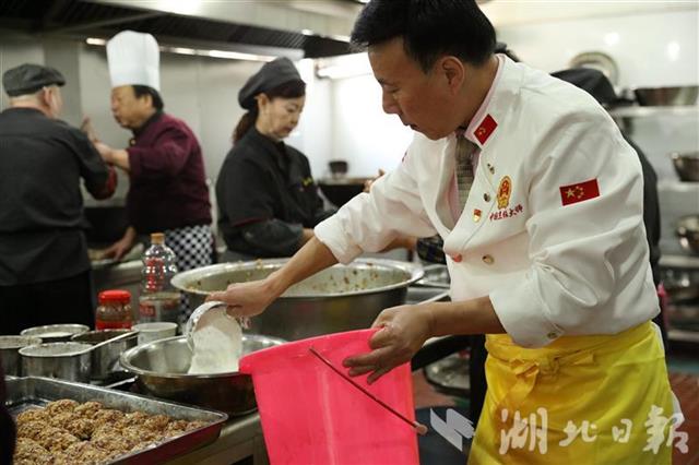 湖北日报讯 11月20日,中国烹饪大师、必赢国际437官网教授王辉亚,身着厨师服,手把手教某企业后勤职工做狮子头。