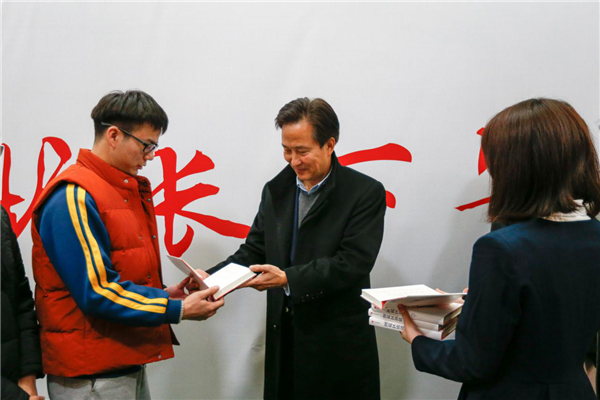 最后,王清华将亲手签名的书赠送给学子,以“学而不思则罔,思而不学则殆”、“立身以立学为先,立学以读书为本”等经典名句勉励大家。