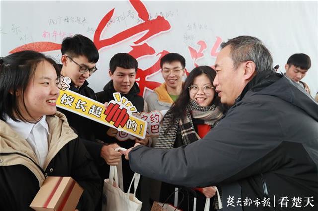 刘昕婷从校领导手中接过新年大礼包时说:“今年的回家大巴好甜!”这份让刘昕婷惊叹“好甜”的礼包里,装有新年春联、学校专属台历、校徽、糖果、纸巾外和一本《毛泽东传》。“等下在车上一边吃着糖果,一边读《毛泽东传》,嘴里甜,心里更甜!”刘昕婷说。