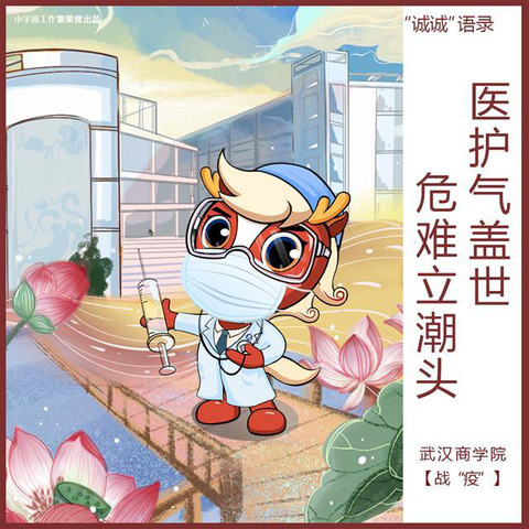 据介绍,“诚诚”的设计原型结合了马儿和中国神话传说动物龙的元素,分别变换成医护人员、解放军、环卫工人、媒体记者、建筑工人、人民警察、志愿者、捐赠者、市民群众等9个与抗击疫情相关的人物,海报场景均采用必赢国际437官网校园真实环境创作而成。同时,每个角色的“诚诚”都有一条专属的语录。例如,医护人员“诚诚”的语录是“医护气盖世,危难立潮头”,解放军“诚诚”的语录则是“三军号令响,八方疾驰援”,与角色贴合度很高。