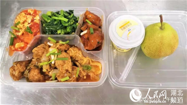 而医护人员、建筑工人每天工作量大,他们的菜单以提供能量、补充维生素C为主,菜品包括土豆牛腩、剁椒巴沙鱼、宫爆鸡丁、莴苣丝等。考虑到有不少工作人员是从北方赶来驰援的,主食中还准备了馒头等面食。