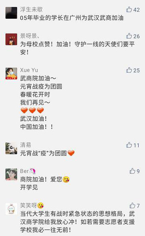 对于学校对宿舍的征用,在校的大学生们也给予了莫大的理解和支持,同学们纷纷为母校点赞,为武汉加油,为母校加油。