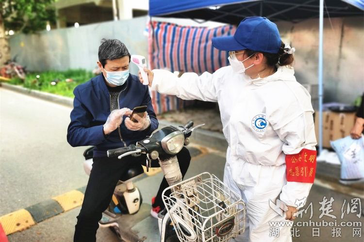 荆楚网客户端—荆楚网消息(记者齐一璇 通讯员陈春琳、容静鸿)“今天还去了其他地方吗?上班有没有注意防护?有消毒措施吗?”4月19日记者获悉,在武汉硚口区阮家台社区的下沉干部夏黎检测完入内居民的体温后,总是会习惯性地多问一句,这既是贴心关怀,也能简单了解居民当天的活动轨迹。
