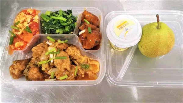 各餐均设置了健康标准、医护人员和病人的食谱均单独设计、菜品运送时间严格把控……这些早已成为火神山、雷神山的餐饮标配。据了解,两家医院每天供餐四次,早餐包含主食、粗粮、肉包、稀饭、鸡蛋、牛奶至少六个品种,中晚餐及宵夜则严格按照四菜一水果一酸奶的标准提供。