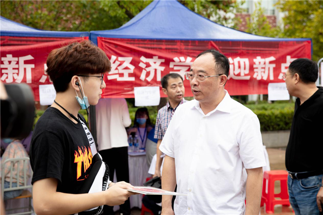 必赢国际437官网党委书记刘志辉,在和新生交流。