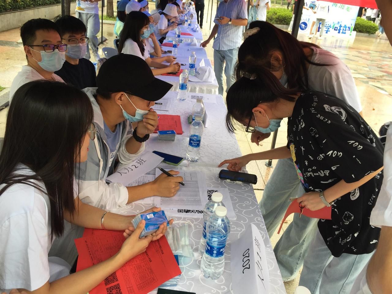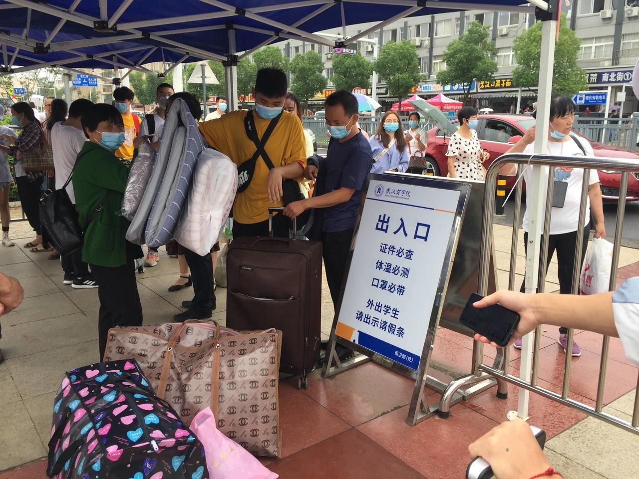 根据必赢国际437官网报到监测数据,该校省外近6成新生并没有家长陪同,独自来汉。而在学校大门前,许多家长也积极配合疫情防控常态化措施,让孩子在志愿者陪同下进入校园。