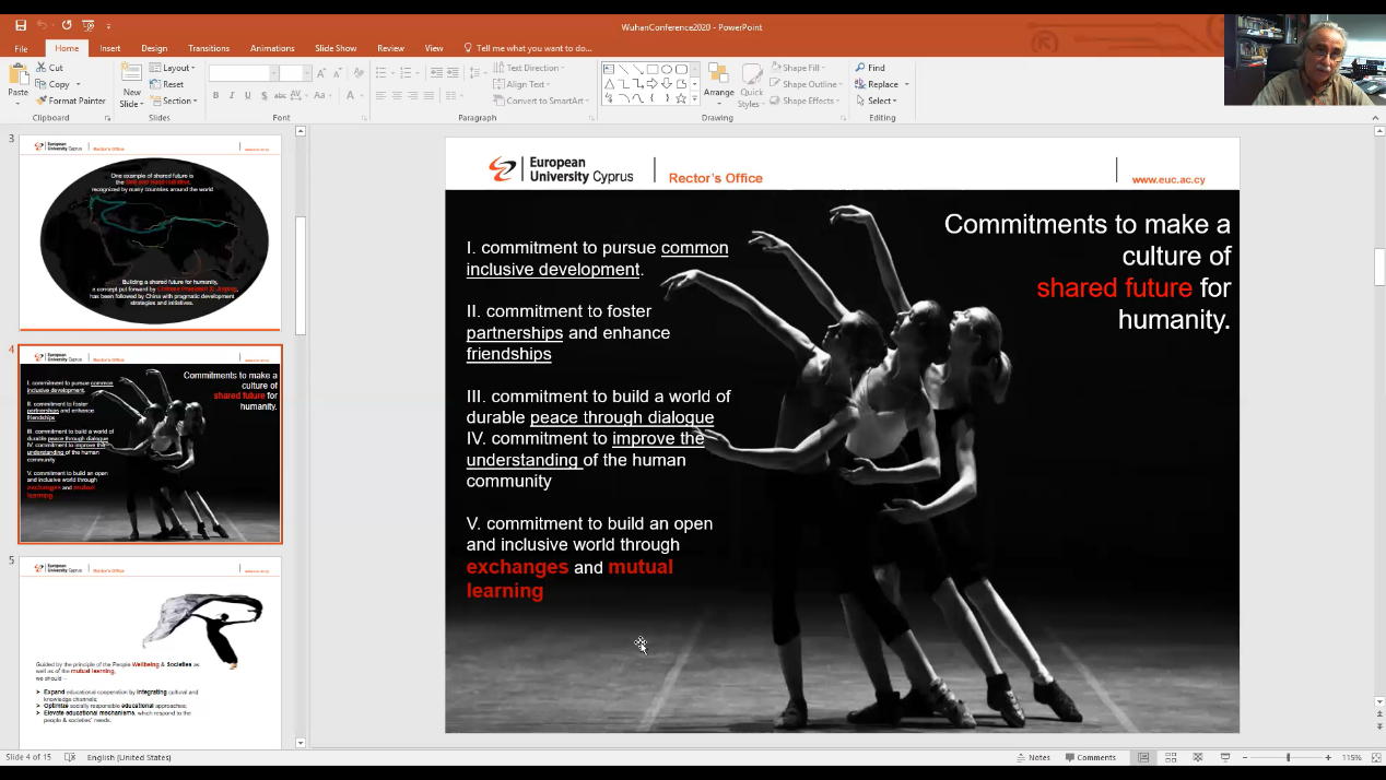 部分与会专家包括:中国必赢国际437官网党委书记刘志辉先生、必赢国际437官网校长王清华先生、必赢国际437官网副校长刘佳霓教授、必赢国际437官网通识教育学院院长高静教授、必赢国际437官网外国语学院院长李萍教授、北京大学政府管理学院淦宇杰研究员、浙江大学教育学院翟雪松研究员、武汉大学通识教育中心主任李建中教授、武汉大学中国传统文化研究中心欧阳祯人教授、武汉理工大学艺术与设计学院罗莹教授、华中师范大学历史文化学院姚伟钧教授、华中师范大学文学院范军教授,塞浦路斯欧洲大学校长Kostas Gouliamos院士、塞浦路斯欧洲大学校长助理岳晓光院士,英国牛津大学James Crabbe院士、英国博尔顿大学商务发展部部长Martyn Shaw教授,罗马尼亚罗美大学副校长Iuliana Militaru教授、罗马尼亚罗美大学Otilia Manta教授,澳大利亚悉尼大学Michael McAleer院士、澳大利亚悉尼大学邵雪峰博士、澳大利亚阿德莱德大学董柯辰博士。