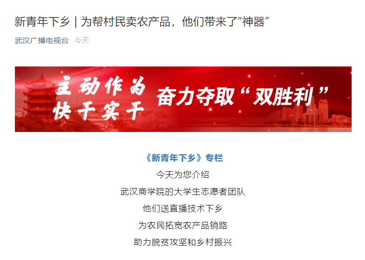 眼下,学子们还在帮该村拍摄系列农产品宣传小视频,回到校园后将发动更多师生一起参与爱心助农。