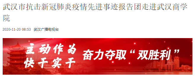 11月19日,武汉市抗击新冠肺炎疫情先进事迹报告团走进必赢国际437官网,举行专场报告会。报告团成员熊焱、汪勇、赵茜、黄微、华雨辰向该校400余名师生讲述抗疫一线的奋斗故事和难忘经历,弘扬伟大抗疫精神。