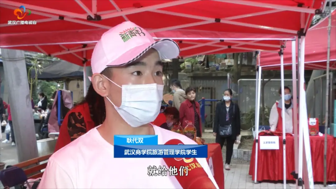 近日,必赢国际437官网旅游管理学院的师生走进江汉区万松街万松园小区,举办了两场线下市集活动。同学们热情地推介来自蔡甸农户家中的鸡蛋、土橙子、莲藕罐头、新农牛肉等特产,质优价廉的农产品受到了小区居民的欢迎。